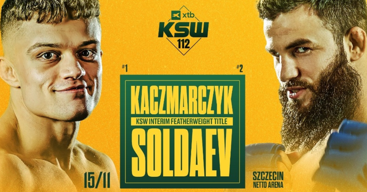 Już w listopadzie organizacja KSW po raz czwarty w historii zawita ze swoim wydarzeniem do Szczecina. Jak ogłoszono w programie „Bez Gardy” w CANAL+ w walce wieczoru gali XTB KSW 112 dojdzie do konfrontacji o tymczasowy pas mistrzowski wagi piórkowej. W starciu tym Patryk Kaczmarczyk (12-3, 3 KO, 2 Sub), numer jeden rankingu tej kategorii wagowej, zmierzy się z numerem dwa, Adamem Soldaevem (10-2, 6 KO, 1 Sub). Pojedynek odbędzie się 15 listopada w hali Netto Arena.