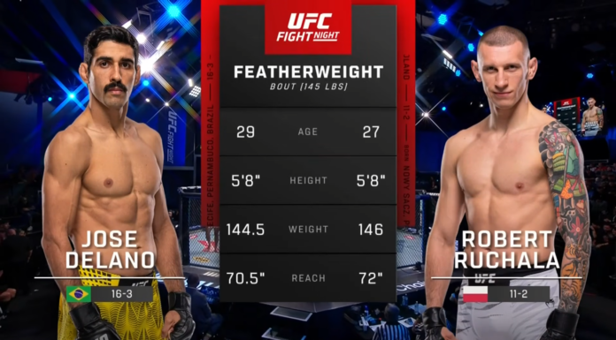 Robert Ruchała przegrał swoją drugą walkę z rzędu w UFC, ulegając Jose Delano jednogłośną decyzją sędziów na gali UFC Fight Night w Las Vegas. Polski zawodnik skomentował porażkę jednym słowem, publikując w mediach społecznościowych zdjęcie z napisem: "Życie".
