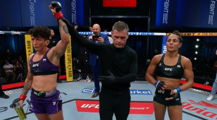Virna Jandiroba narzuciła swoje warunki i konsekwentnie realizowała plan oparty na zapasach oraz kontroli. Tabatha Ricci miała momenty, ale to Brazylijka była skuteczniejsza na przestrzeni całej walki.
